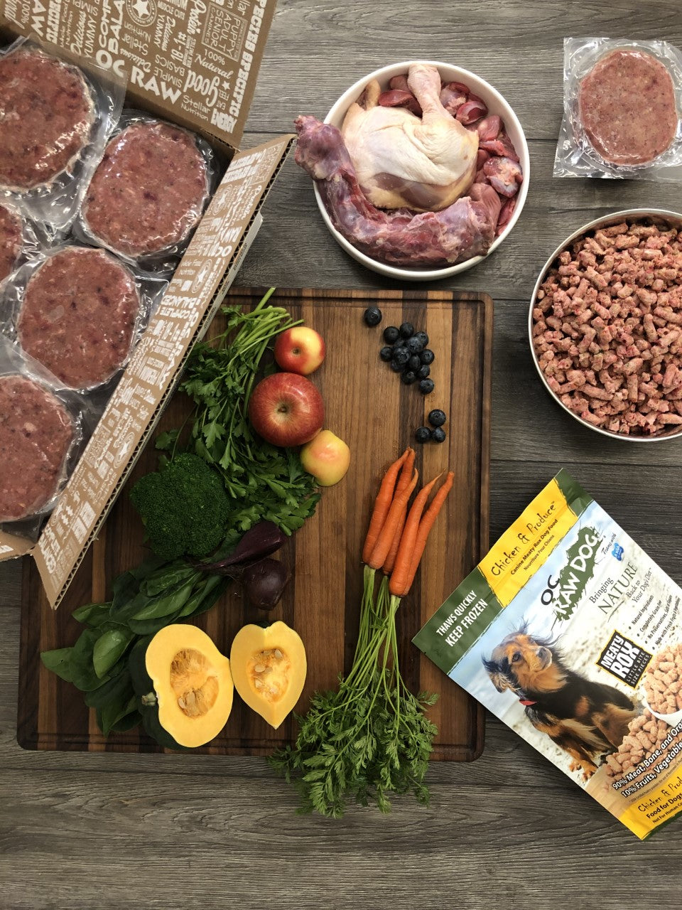 OC Raw has a variety of proteins in both meaty rox and patties to feed the needs of any dog.