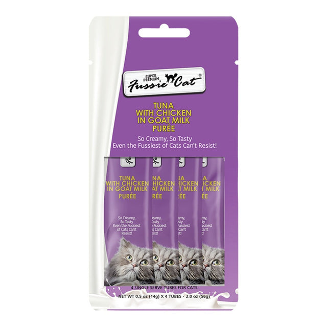Fussie Cat Tuna with Chicken in Goat Milk Puree Lickable Cat Treat 2oz - 4pk