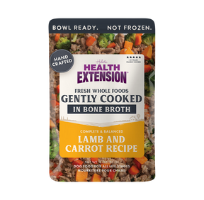 Discover Health Extension’s Gently Cooked recipes - perfect for dogs that crave a fresh home cooked meal. These small batch recipes include a unique blend of powerful superfoods to boost immunity including goji berry, sage, thyme, kelp, turmeric and coconut oil. Gently Cooked is complete and balanced for dogs of all ages. Fresh lamb, beef, or chicken is our first ingredient. Whole vegetables include carrots, sweet potatoes, broccoli. Plus, Gently Cooked is never frozen and always bowl ready for your dog.