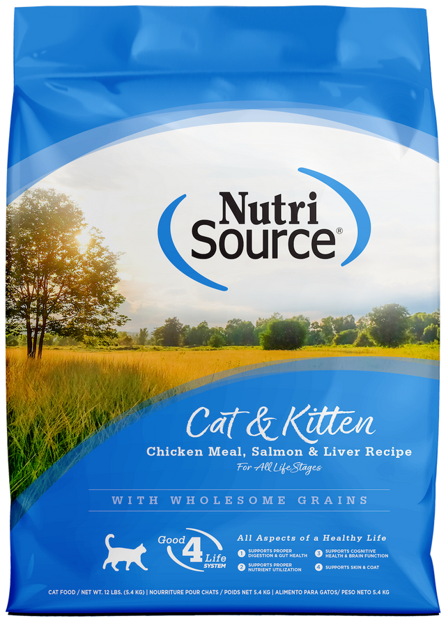 NutriSource® Cat & Kitten Chicken Meal, Salmon, & Liver Recipe is formulated to meet the nutritional levels established by the Association of American Feed Control Officials (AAFCO) Cat Food Nutrient Profiles for all life stages.