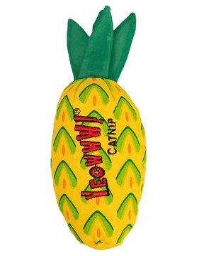 The fifth and largest fruit in the Yeowww! Catnip line of cat toys, the pineapple crushes the competition with 1.45 ounces of our special 100% organically grown catnip – no fillers and no chemicals. All this mouthwatering goodness is packed into a colorful and durable cotton twill cover that cats can really sink their teeth and claws into. And with crinkly leaves to add texture and sound, this pineapple delivers a sweet punch of fun!